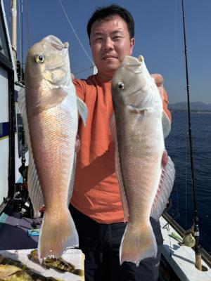 シロアマダイ 30〜43cm 3匹 天秤 ハリス4号2本針 アオイソメ、ホタルイカ