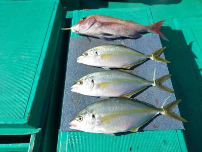 シマアジ | 51〜62cm | 6匹 | テンビンズボ釣り | 餌オキアミ |