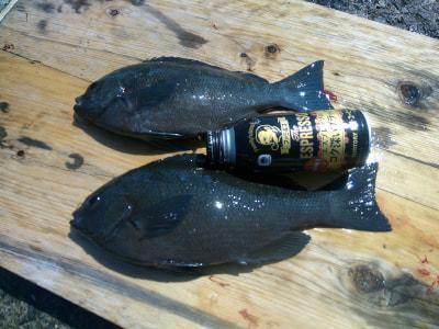 グレ 33〜35cm 2匹 フカセ釣り ハリス1.75号 グレ針5号 ウキ下2ヒロ オキアミ