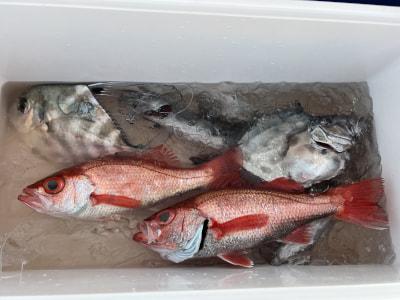 第二西漁丸!1/7(水) アカムツ&ティップラン一日便✨ ジギング一名様でした。 2〜3枚潮で釣り難くく、食いませんでしたが、最後のポイントで連発してくれました♪ アオリイカは当たりあるものの、なかなか針がかりせずでした😢残念 夜明け前から日没後まで、長時間頑張っていただきありがとうございました^ ^