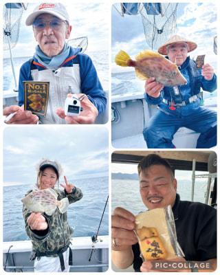 コメント たなばた旅行様のチャーター便「フッチーと一緒にカワハギ釣り」でした‼️ 皆さんワイワイカワハギもよく釣れ、楽しんで頂きありがとうございました😄 ドデカカワハギ35cmも上がり最高でした💯