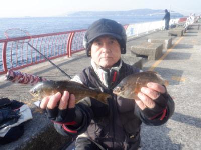 ウミタナゴ | 22.5〜23cm | 2匹 | 落し込み 活エビ5号針 ハリス1.75号 オモリ1号 竿5.4m 棚底 | オキアミ |
