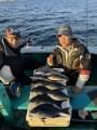海上は穏やかでしたが潮・風逆で船位置が安定せず苦労でしたがトツカアジ・ジャンボアジ・メガアジ・ブリなど巻き上げ途中での針ハズレがかなりありましたね!アジをすくうタモ網は各自持参願います