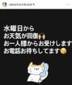 しばらく悪天候でお休みでしたが、 水曜日から お天気回復します お一人様からお受けしています お電話お待ちしてます(^^)
