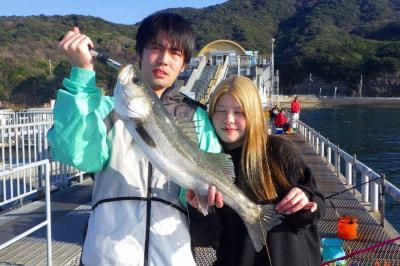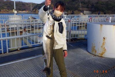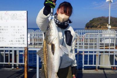 スズキ64aが釣れました! 階段下・和歌山側 のませ釣り・アジにて
