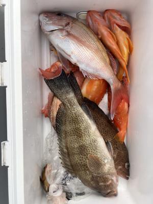 オオモンハタ50.5〜40p 3匹 うっかりカサゴ40〜2匹 アカハタ他