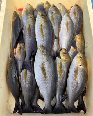 絶品春イサギ🌸 27〜35cm 45匹 竿釣り 道糸PE3〜4号 天秤サビキ ハリス3〜3,5号 鉄火面120 アミエビ
