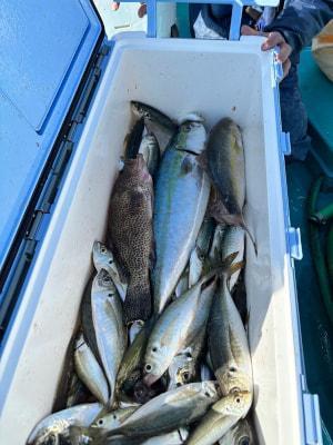 湾内アジ釣り&落とし込み(ノマセ)釣りに出船しました! アジ釣りは、ボチボチ釣れてお土産に! ノマセ釣りは、メジロ・カンパチ・オオモンハタが釣れました! |