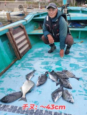 チヌ | 30〜43cm | 9匹 | 紀州釣り | コーン・オキアミ |