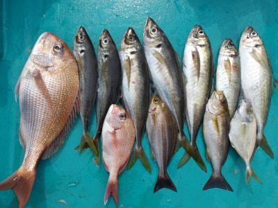 マダイ | 30〜55cm | 2匹 | 竿釣り | オキアミ |