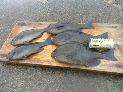 グレ | 27〜35cm | 5匹 | フカセ釣り ハリス1.5号 グレ針5号 ウキ下2.5ヒロ | オキアミ |
