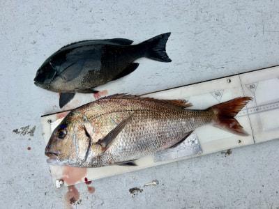 マダイ60cm,グレ42cm 岡崎氏の釣果 |