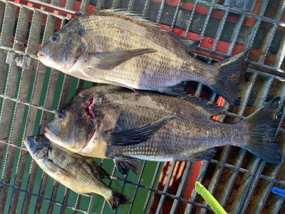 カナヤ様は柱際狙いで47cmまでのチヌ!エビ撒きの釣果です。 |