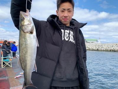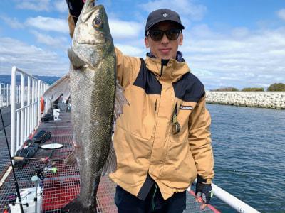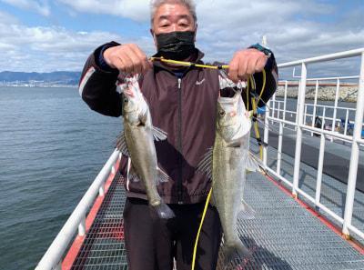 朝一は快晴!太陽がまっすぐに顔を出しました!風もなく釣り日和です!今の所は… 本日はエビ撒き釣りのお客様が沢山ご来園されています! 本日のモーニングチャンスはハネが立て付けに4本釣れています。タナは4〜5ヒロとやはり様々ですね。釣り場も西側、中央、東側と広範囲で釣れています。 7〜9時半までの間にハネの釣果は2倍に!現在40〜50cmで10匹まで来ました。現時点で昨日の1日の釣果を抜いています。やや東側が優勢といえば優勢です。風が強くないためか、アタリが取りやすいようですね。 アタリの出方もこれまた様々でウキが途中まで沈んでまた戻ってきたり、そのまま止まったり、完全に沈んだかなと思った矢先、また戻ってきたり、もちろん綺麗にスコン!っと入るアタリもありますが、微妙な冬らしいアタリの場合がほとんどです。仕掛けを投入する場所も十人十色で、足元にポトっと落とされる方、釣り場の内側に投げ込む方、やや前の方に打ち込む方、柱スレスレにウキを構える方などなど。どれも有効的な釣り方ですが、1番多いパターンは足元にポトっと落とす方法です。アタリがなかなか出なかったり、タナを変えても反応がない場合は、仕掛けを投入するポイントも変えてみてくださいね。 10時台にチヌが2枚!しかも43〜46とこれまでの小さなチヌを一蹴するように良いサイズが上がっています。タナはハネと変わらず、釣り方もエビ撒き釣りで釣れています。ノッコミ真っ最中の個体ですね。 46cmのチヌは大物賞更新しました!挑戦者求む! 11時を過ぎ、風がだんだんと強くなってきました。それに比例するように潮も西から東に向かって強く流れ始めました。潮の上の方が流れているようですが、ウキ釣りの方はなかなか釣りにくそうにされています。ですがハネ52cm、スズキ63cmと、大型が釣れました。やはりお昼間際から過ぎぐらいの時合いは大型がかかりやすいです。