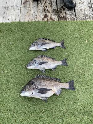 筏●チヌ 38〜45cm 3匹 ハリス1.2 針23錘なし 沖アミ