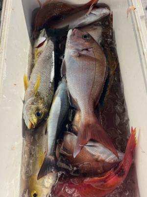 シマアジ、マダイ、カンパチ、イサギ、メイチダイなど