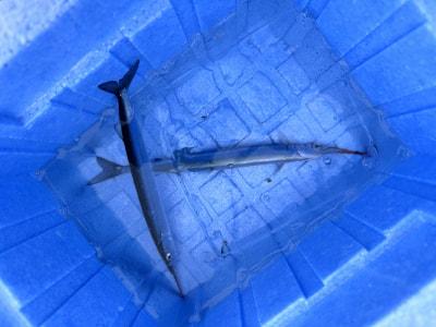 | 雨で静かな鳴尾浜 | サヨリ釣れました。27cmでした。 |