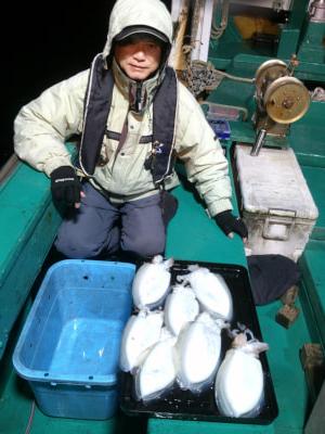 モンゴウイカ | 0.4〜1Kg | 3〜10杯/計33杯 | 竿釣り | エギ3.5号 |