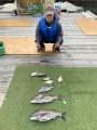 開園時、波風共に穏やかです。 午前中の釣果ですがサビキでサバが釣れていました。今日は足元で釣れています。チヌは紀州釣で釣れていました。テトラ際でオキアミとコーンでした。 紀州釣のお客様、昼からさらに絶好調!なんと最終15匹の大漁!全てのチヌがノッコミで腹パンパ…