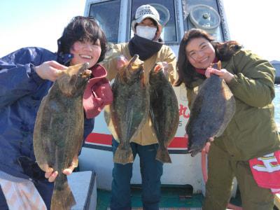 ![]() 肉厚ヒラメGET!佐藤さん、荻野さん、志穂さん | ||