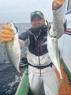 ![]() ヒラメ3枚、マダイ、イサギ、トツカアジ、マルアジ、キビレ高釣果平田さん | ||