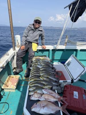 ![]() マダイ33〜43センチまでを7匹、1匹だけ釣れた小アジをエサにメジロ72センチを釣りました^_^木村様 |