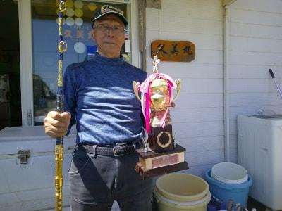 ![]() 永長さん アカイサギ狙いしていたら6.5kgのホウキハタが釣れました |