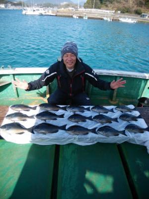![]() 沖一文字外、小イサギ〜イサギ、12枚、25〜34cm、マダイ、1枚、41cm、かご釣り堺市、土淵さん |
