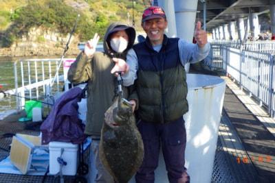![]() ヒラメ70aが釣れました! 階段下・大阪側 のませ釣り・アジにて高橋様ご夫妻 |