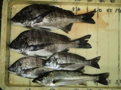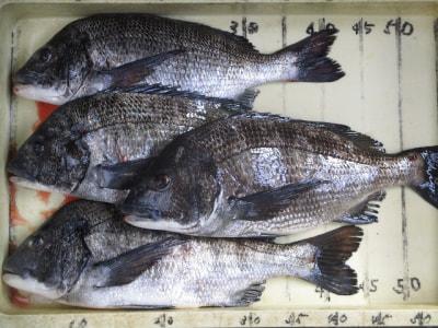チヌ | 42〜45cm | 4匹 | 短竿 | アケミ丸貝 |
