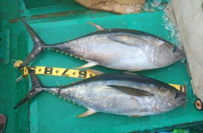 ヒッサゲ(小型のキハダ) | 11.5〜14.5Kg | 2匹 | 完全フカセ | イワシ |