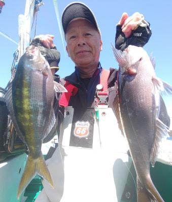 | 時化明け 浅場から深場の五目釣りでした ウメイロは相変わらず難しいです 2人で10匹です |