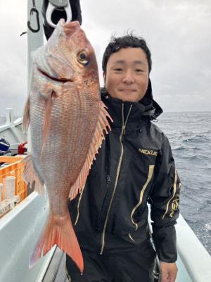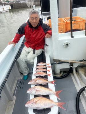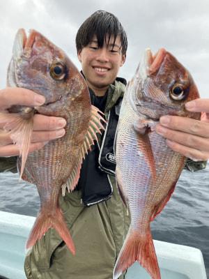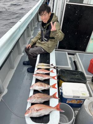 マダイ | 42〜53cm | 3匹 | 竿釣り、ハリス6号2本針、オモリ120 | オキアミ | |