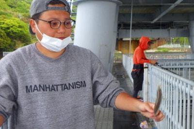 朝一は少し雨が残っていましたが、徐々にいいお天気になってきました!小アジサイズのマアジは、今日も展望デッキ下の立ち釣りエリア、特に内向きで釣れていて、多い方で50匹ほど釣れていたとか! |