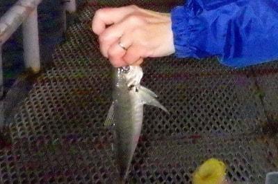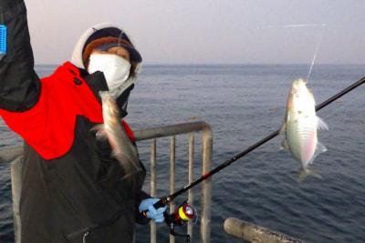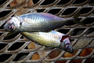 午後からも桟橋各所で小アジサイズのマアジが釣れていました!日中はエサ取りも混じっていますが… |