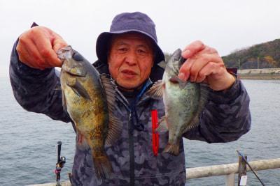 メバル25aが2匹釣れました! 先端・大阪側 ズボ釣り・シラサエビにて 杉浦様 |