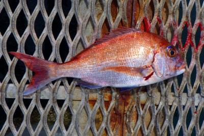 マダイ | 31cm | カゴ釣り(ハリス3号・タナ8ヒロ) | オキアミ |