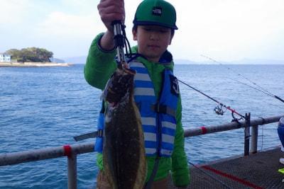 ヒラメ45aが釣れました! 展望デッキ下・和歌山側 のませ釣り・小アジにて 池田様 |