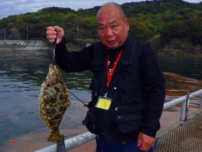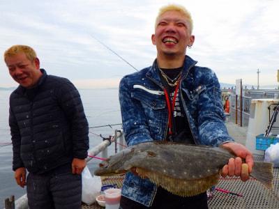 ヒラメ47pが釣れました! 階段下(大阪側)ノマセ釣り(アジ) 樋口様 |