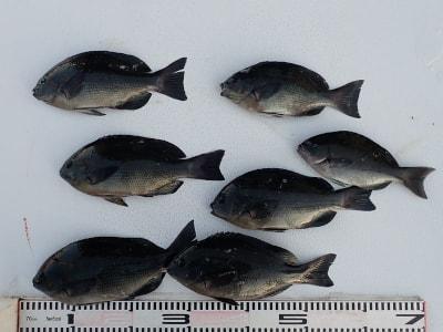 グレ | 25〜31cm | 7匹 | フカセ釣り ウキ下2〜2.5ヒロ ハリス1.5号 針・グレ5号 | オキアミ |