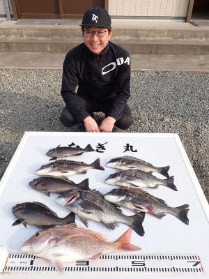 チヌ・39〜42cm 5匹 真鯛・47cm 1匹 グレ・29〜32cm 3匹 若松様 |