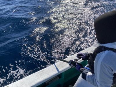 | 落とし込み&飲ませで出ました!!・・・青物&根魚狙いで出ました!!潮が全く動かないです!!・・・頑張って仕留めてくれました!! |
