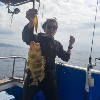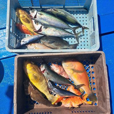 | ジギング&タイラバに出船しました。 台風からのウネリの中、潮が流れ無いしなかなか魚が当たらず…。 アオハタ、大サバ、オオモンハタやイラ…etc. グレジギ反応モリモリでしたが、1つだけ。 厳しかった〜。 |