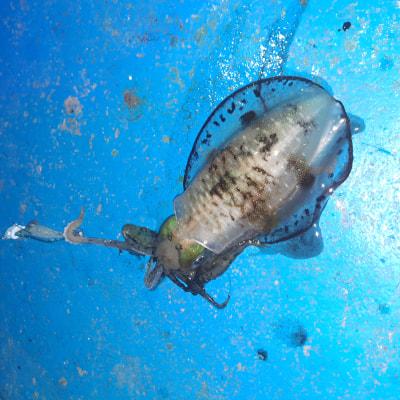 | 日暮れ迄の1時間、久し振りにティップランへ。 1キロ程のアオリイカが釣れました。 |