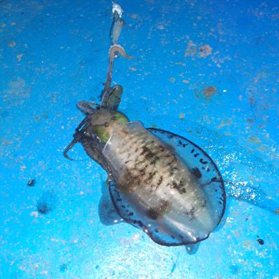 日暮れ迄の1時間、久し振りにティップランへ。 1キロ程のアオリイカが釣れました。
