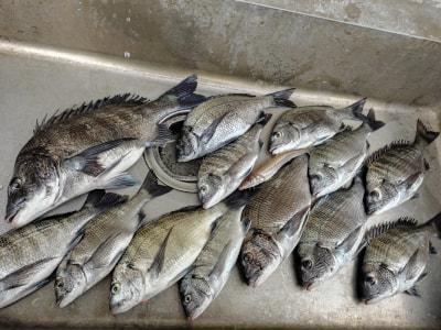 チヌ | 28〜40cm | 13匹 | ハリス1.2号 針3号 オモリB 竿5.3m | オキアミ |
