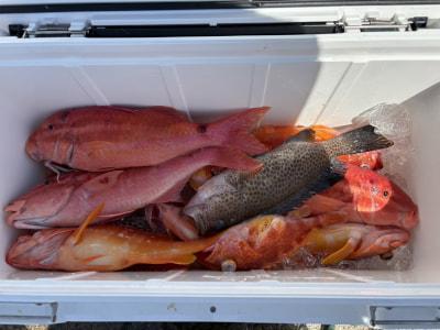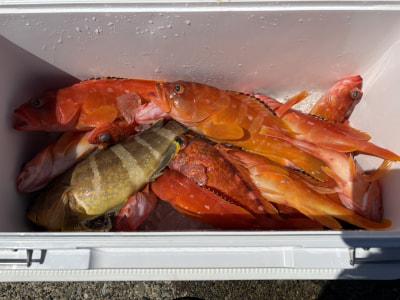 | 久しぶりの根魚釣りに出船、アカハタ、アオハタ、オオモンハタ、アヤメカサゴ、オジサンなどが釣れました😊 本日もご乗船いただきありがとうございました🙇♂️ |