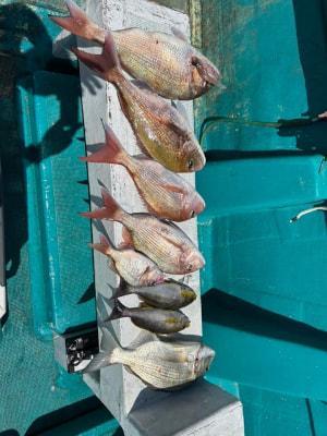 | 釣り場 | 釣り人 | 魚種 | 大きさ | 匹数 | 仕掛け | エサ |