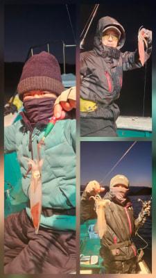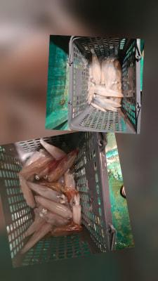 | 半夜イカ釣り出船。ここ最近、渋くテクニカルな釣りになってきました😅ケンサキ1人あたり28、27、22、5ハイ、スルメ1モンコウ1 |