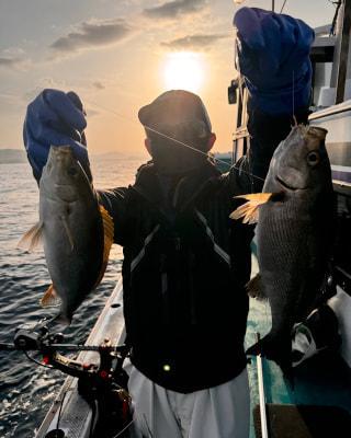 やりました!!🙌 イサギ仕掛けの細ハリスで見事、高級魚✨イシダイ49センチGET❗️👏👏 おめでとうございます😆 |